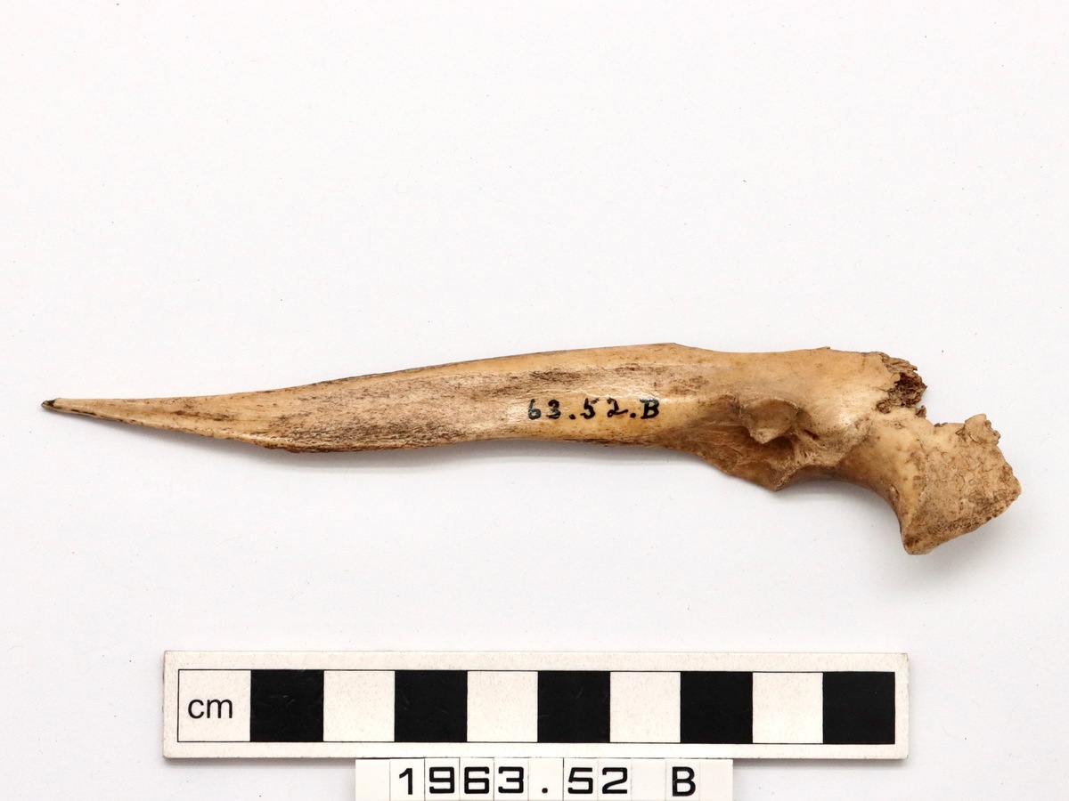 Description from catalogue card for 1963.52 [A-P]: 'A-C. Ulnae, probably deer.