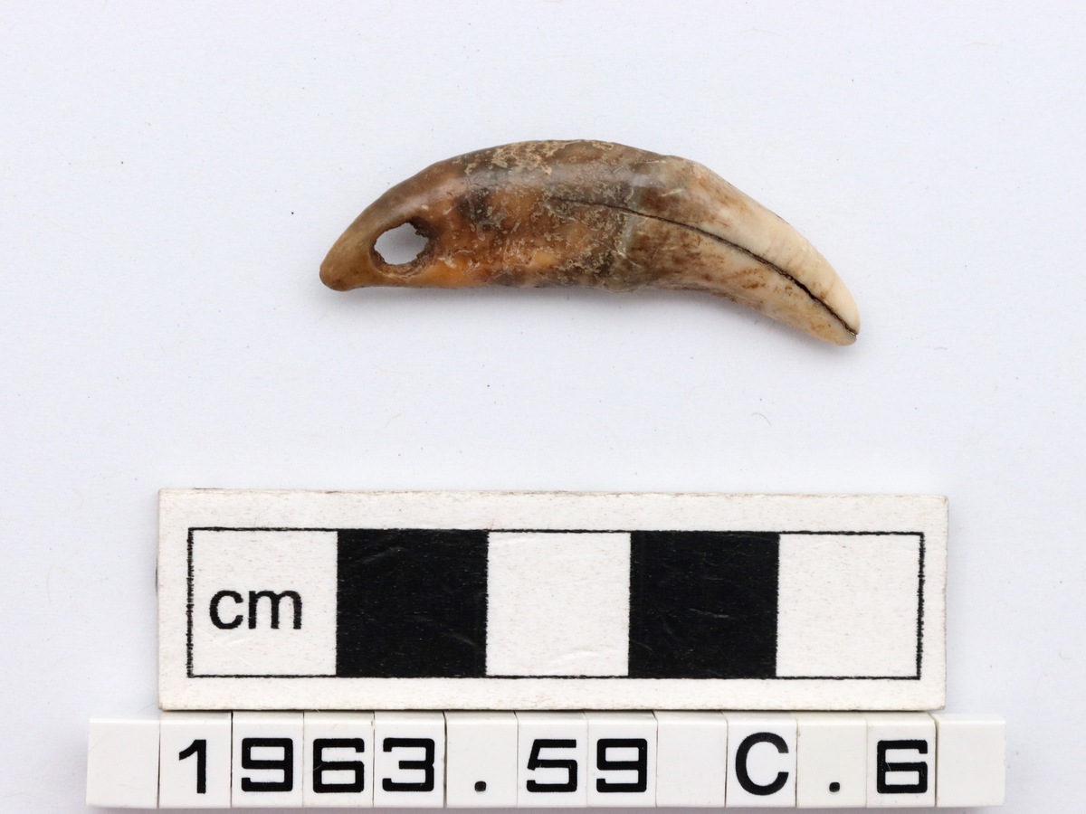 Description for 1963.59 [C.1-8]: 'Eight perforated canines, probably from wolf or dog.'