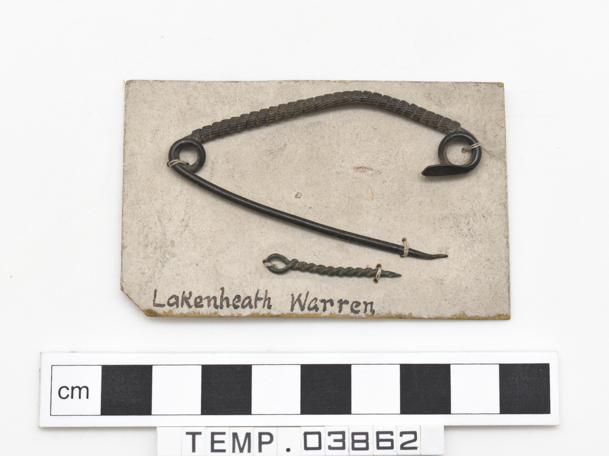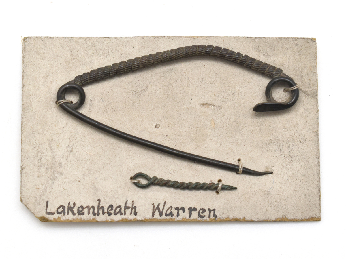 Small piece of card onto which the objects are mounted reads: 'Lakenheath Warren' on one side and '506' on the other.