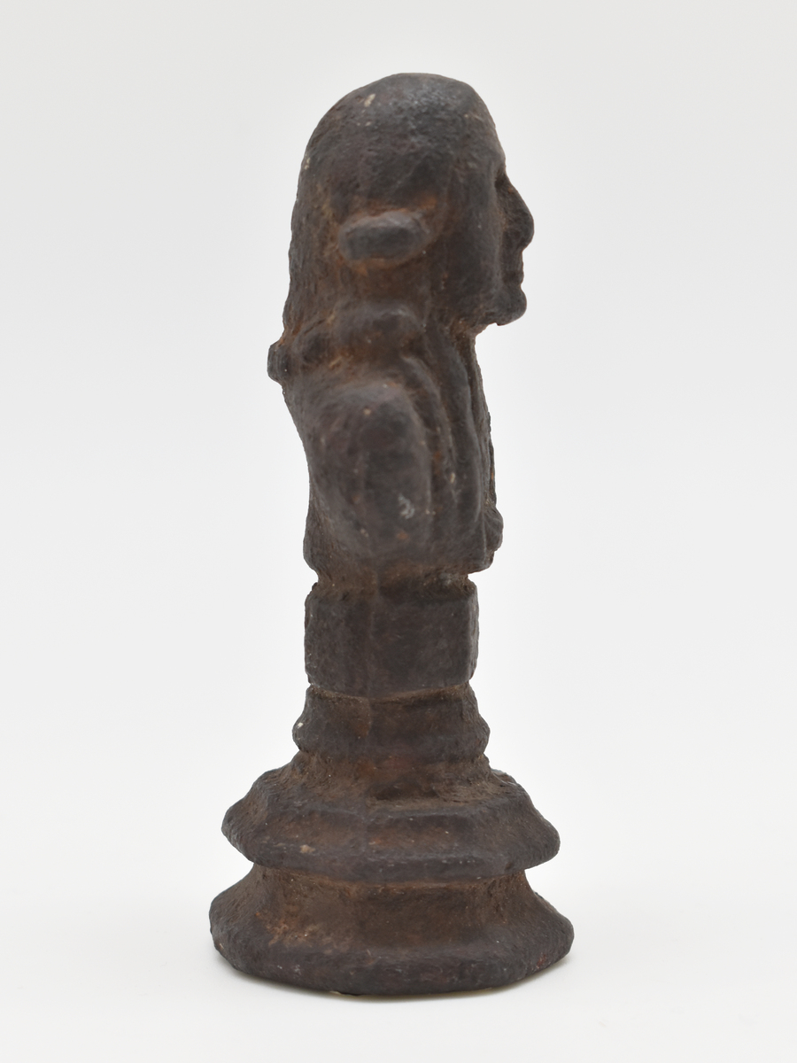 Accession register for 1905.2: 'An iron bust of John Wesley (h. 4".1) with name (much corroded) on pedestal'.