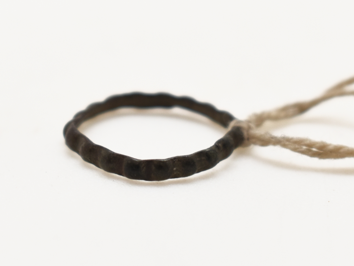 Finger ring made from copper alloy. The band is formed of little bosses.