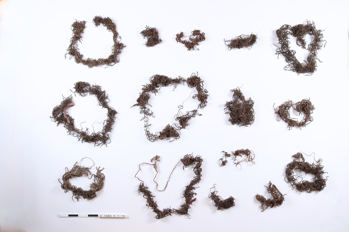 Catalogue card for Z 1320 A notes 'Dress. Women's loin girdles of netted twine.' Annotated in pencil, '12 more or less. Complete and incomplete'.