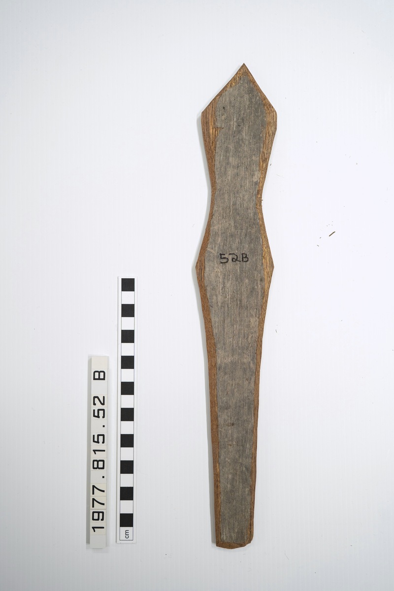 Catalogue card handwritten in blue ball point pen reads, 'Two wooden grave-markers.'