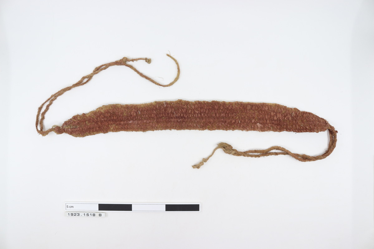 Two ordinary headbands made form native twine coloured white, with red ends on the front side