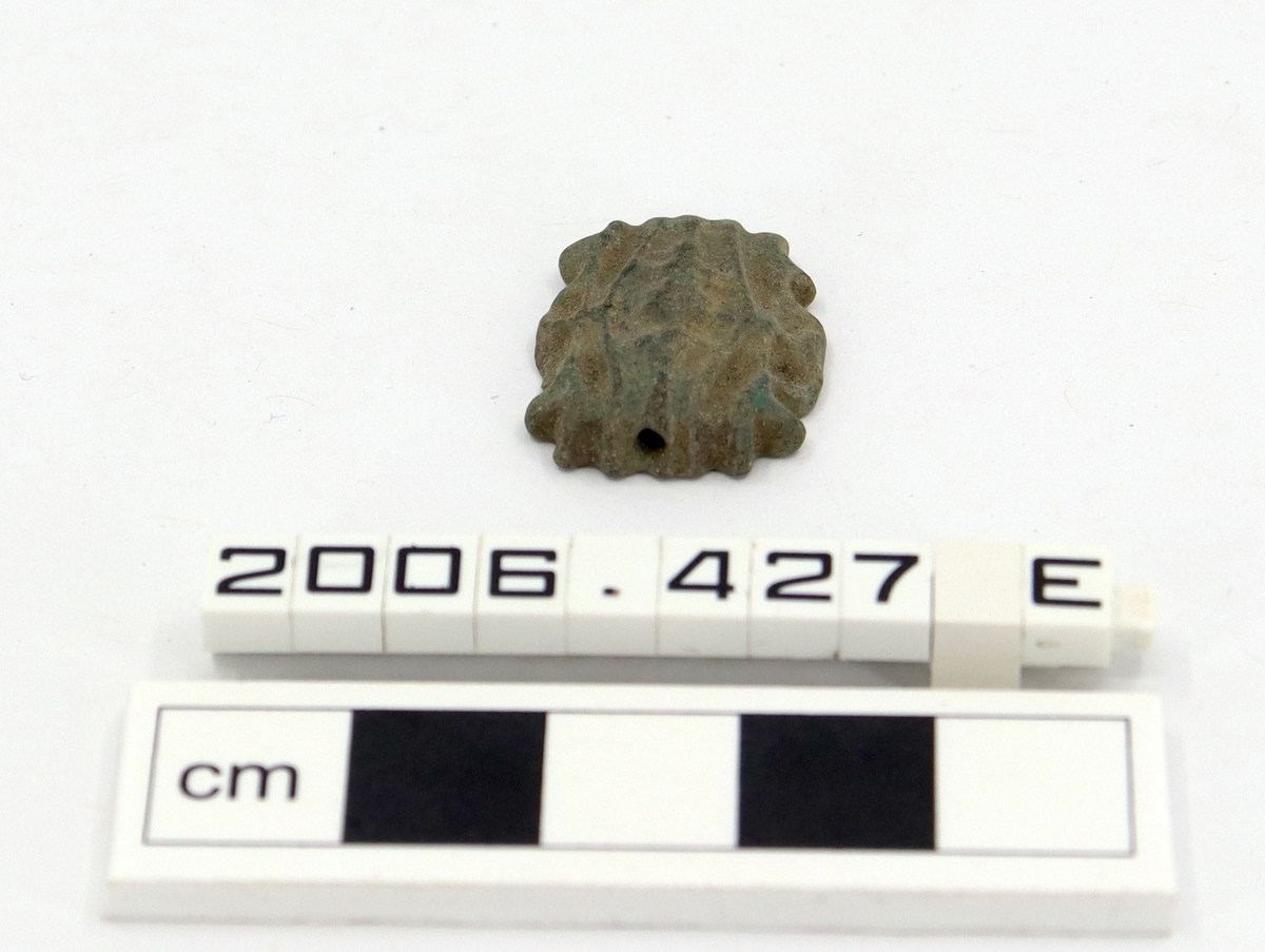 A green faience amulet or bead in the form of a wadjet/wedjat eye or Eye of Horus.