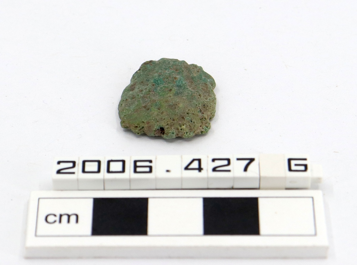 A green faience amulet or bead in the form of a wadjet/wedjat eye or Eye of Horus.