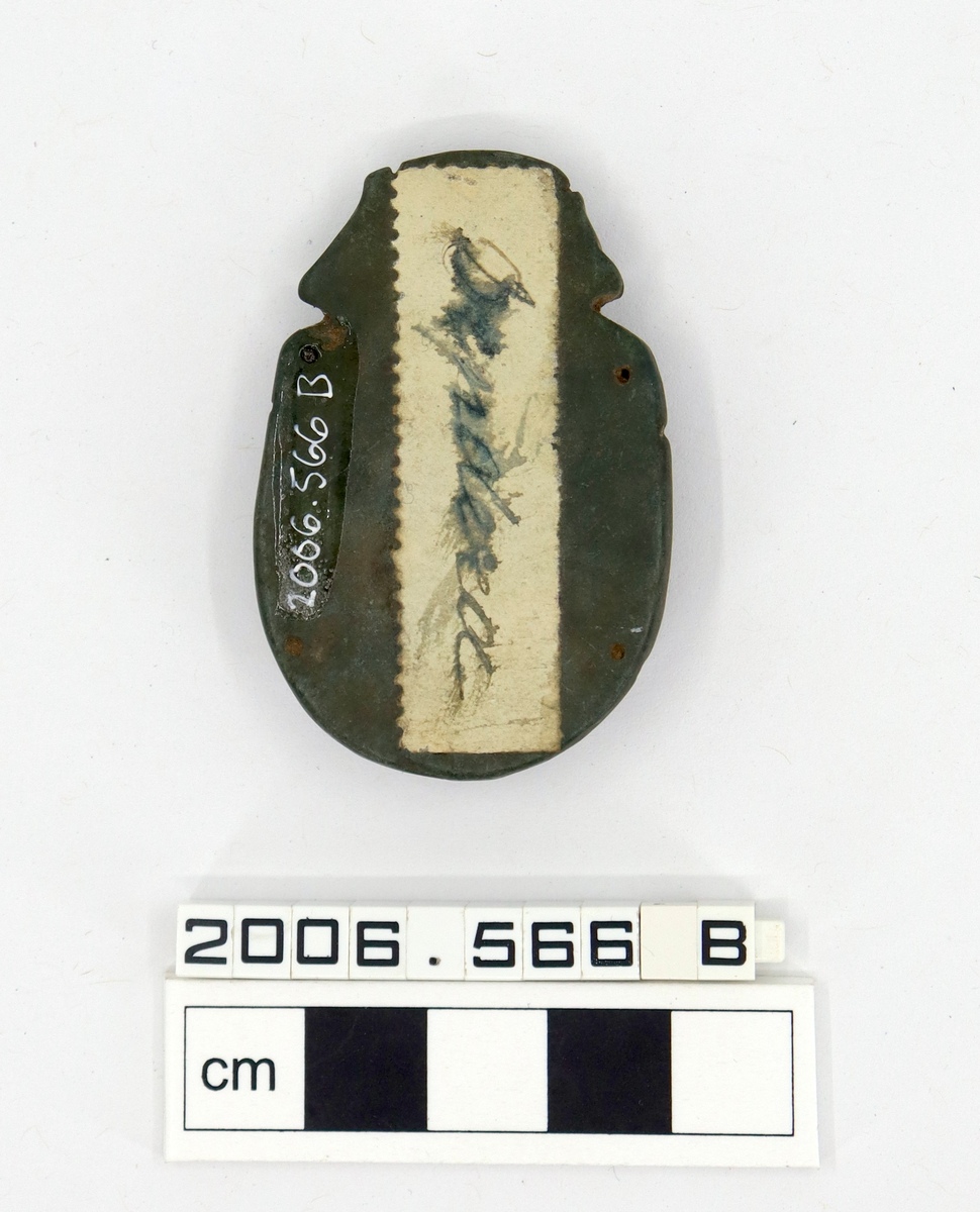 Handwritten label on the underside of the scarab reads 'Dendera'.