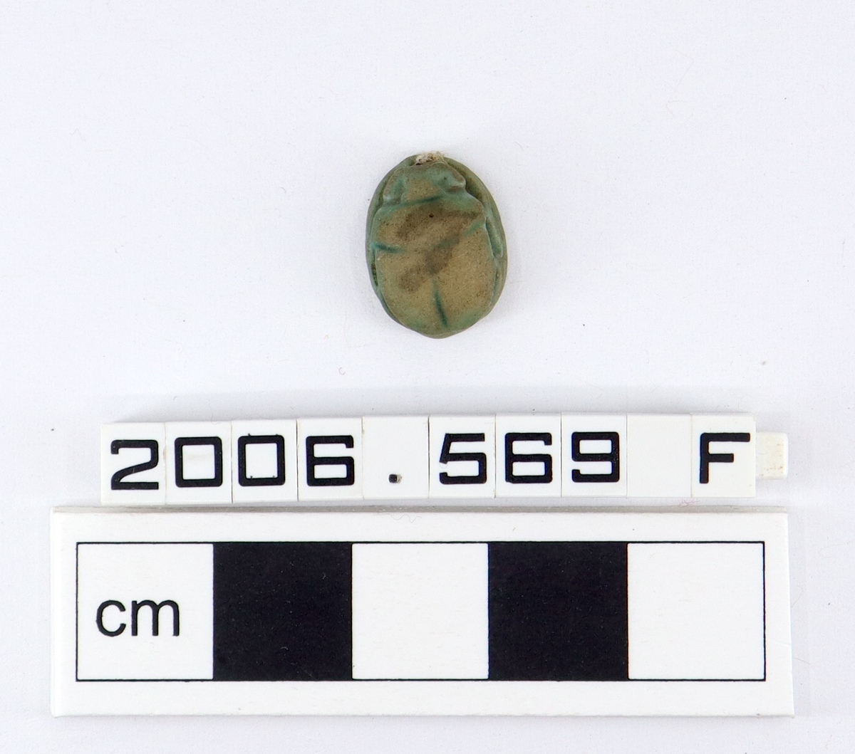 One scarab marked '34' on its back; another marked '68' on its back. The others are unmarked.