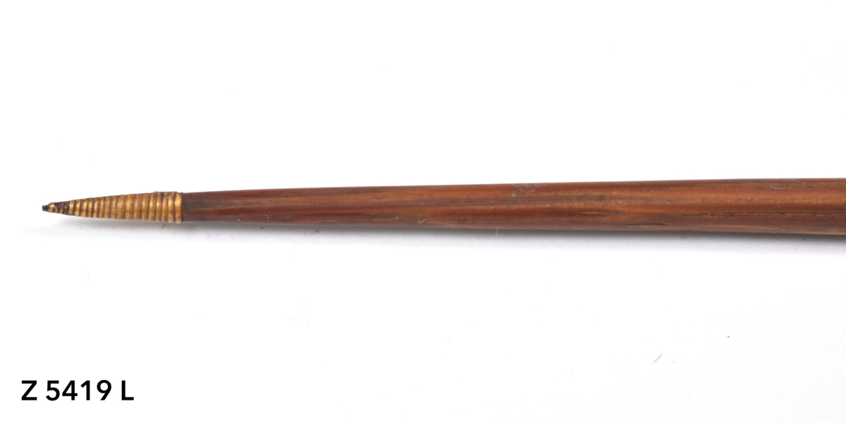 There is a tie attached to the lower part of the point - this may indicate that the object was part of a historic display, or used to bear a historic label. Similar tie on Z 5419 R.
