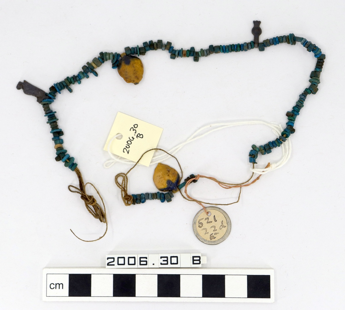 A string of faience beads and amulets.