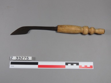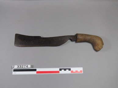 Fish cutlass with a curved wooden handle.