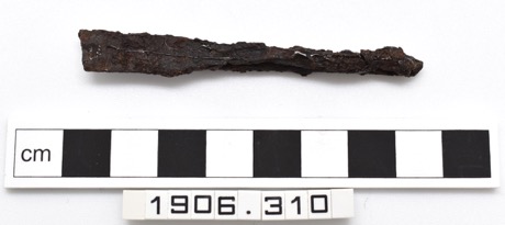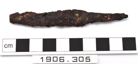 Iron knife; long tang, similar proportioned shoulder and ch…