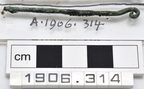Copper alloy pin; twisted cylindrical shank with a curved s…