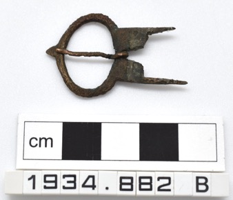 A small, cast copper alloy oval-framed buckle. Oval loop wi…