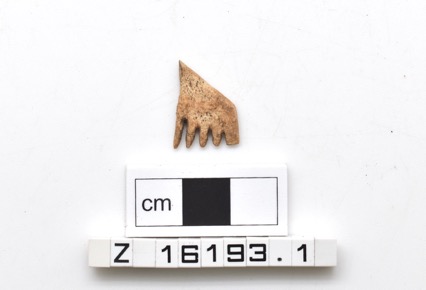 Part of a single-sided composite bone comb. Endplate with a…
