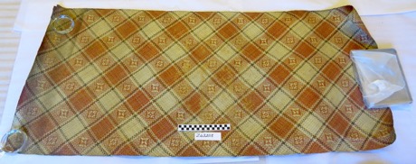Sleeping mat, made from strips of dyed red and purple panda…