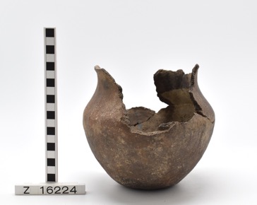 Incomplete pot with upright rim, high shoulder and flat bas…