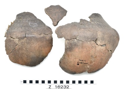 Globular pot with pronounced shoulder; eight sherds present…