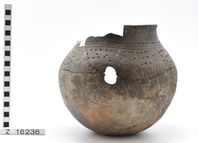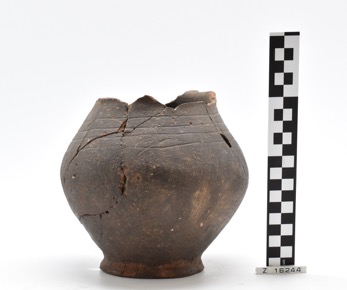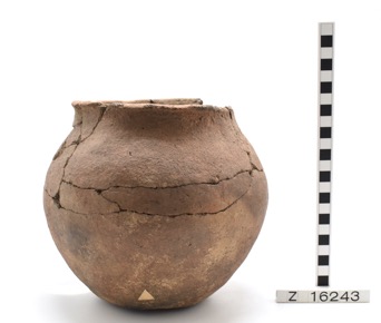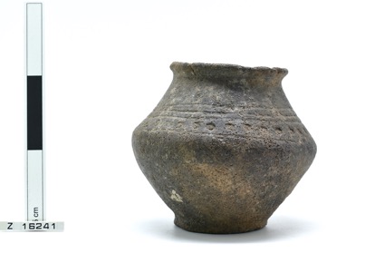 Small, shouldered pot with everted rim, shallow neck and fo…
