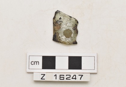 Lead plug from the bottom of a cremation urn. Roughly oval …