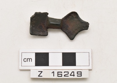 Copper alloy small long square headed brooch. Rectangular h…