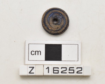 Annular wound glass bead of translucent blue glass with opa…