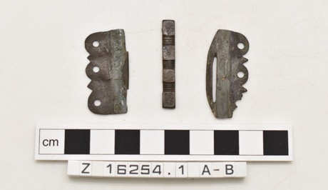 Pair of copper alloy wrist clasps (A-B) made from sheet met…