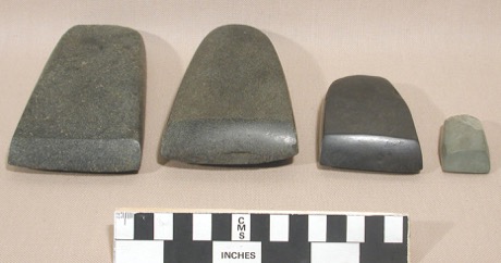 Adze - One of four polished stone adzes; possibly basalt.