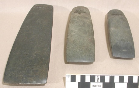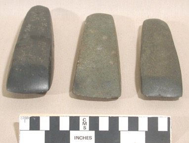 Adze - One of three polished stone adze heads of elongated …