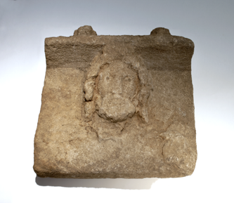 Bust of a god, possibly Jupiter or Pluto, carved in relief …