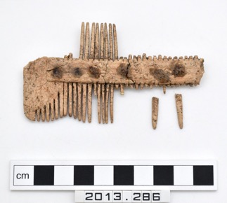Double-sided, composite bone comb. Rectangular with rounded…
