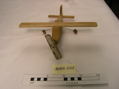 Model aeroplane. Wooden body and wings. The one remaining w…