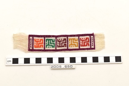 Cotton bookmark with tassels at either end. Decorated on on…