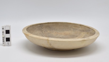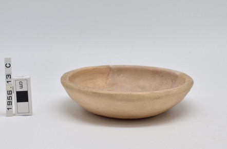 A wheel-made bowl of buff fabric. Shallow with bevelled rim…