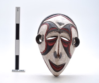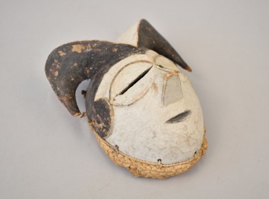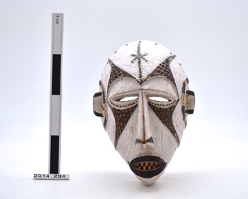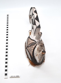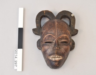 Mask. Used in the Lughulu masquerade. Wood, with a plant fi…