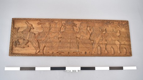 Rectangular wooden wall panel, carved in relief. Depicting …