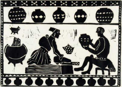 print; linocut - Linocut by Azaria Mbatha titled 'Potter's …