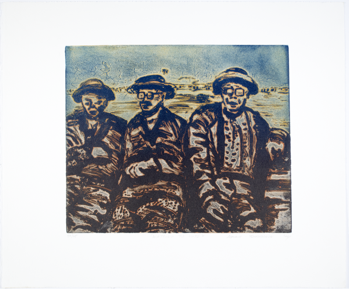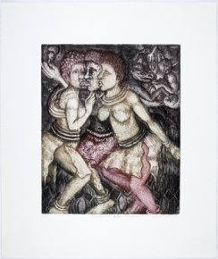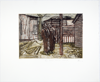 print; etching - Etching by Simon Mthimkhulu titled 'Two bl…