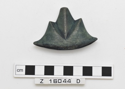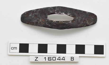 Iron pommel guard or hilt plate. Curved, elongated oval wit…