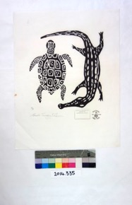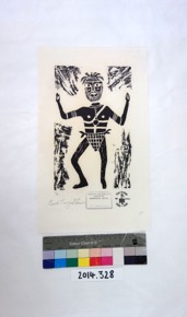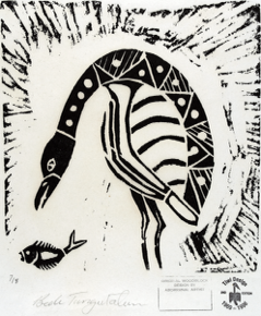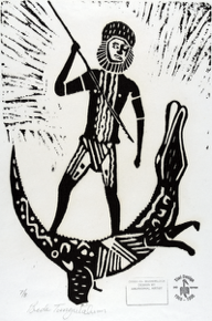 Black and white woodblock print by Bede Tungatalum, untitle…