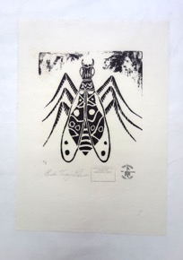 Untitled [Insect] Black and white woodblock print by Bede T…