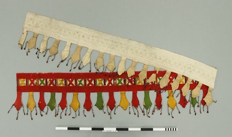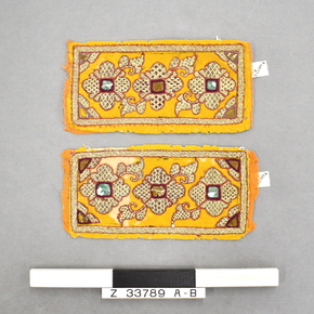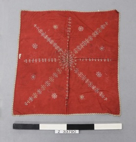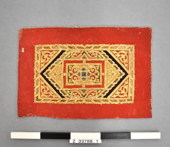 Surutun. Pillow end of red wool decorated with gilded paper…