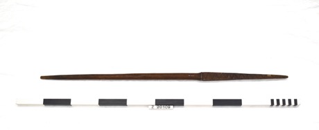 Bulang baling. Palm-wood dart or throwing stick with single…