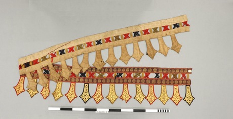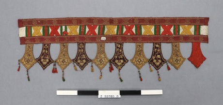 Daun budi. Fringe of leaf-shaped pendants for a clothes rod…