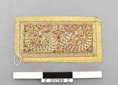 Embroidery panel for a pillow. Rectangular panel of gold si…