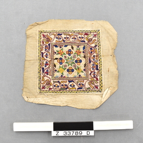 Embroidery panel for a pillow. Square panel of woven cream …