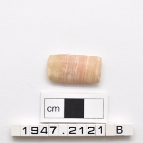 Sub-rectangular tabular bead made from stalagmite. Banded i…