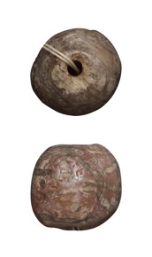Irregular, ball bead of etched cornelian or agate. No prove…