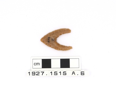 Concave-base flint arrowhead. Bifacial.