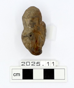 A small whistle in the form of a crouched human with tall h…